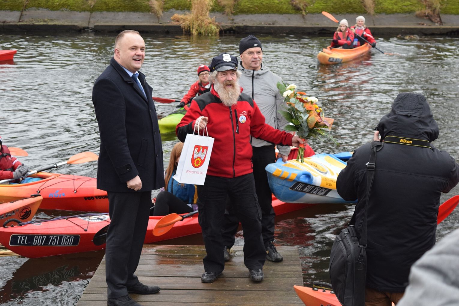 Podróżnik, rozpoczął od spływu kajakowego Gwdą – z elektrowni Koszyce na wyspę w centrum Piły. Razem z nim w dół rzeki popłynęło kilkadziesiąt osób. Nie był to jego pierwszy spływ Gwdą, i – jak mówił – to rzeka doskonale nadająca się na rodzinne spływy kajakowe. Zdradził także, że spływy rzekami cieszą go zdecydowanie bardziej niż rejsy po morzach i oceanie.