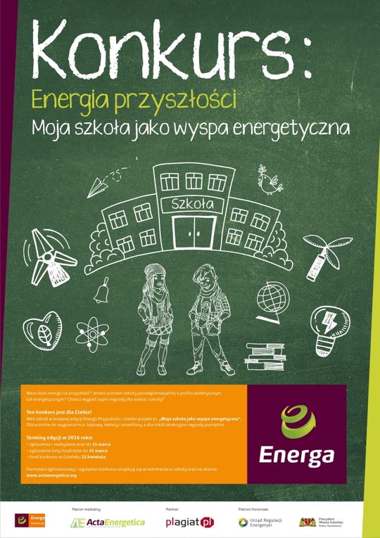 „ENERGIA Przyszłości” to konkurs, który wpisał się już trwale w kalendarze szkolnych wydarzeń. Z roku na rok cieszy się coraz większym zainteresowaniem szkół i samych uczniów. Temat pracy pisemnej, którą w tegorocznej edycji mają przygotować uczestnicy konkursu brzmi: „ENERGIA Przyszłości. Moja szkoła jako wyspa energetyczna”. Termin nadsyłania prac upływa 15 marca 2016 roku.