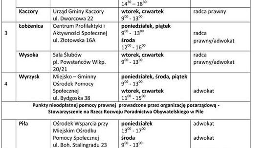 Ustawa z dnia 5 sierpnia 2015r. o nieodpłatnej pomocy prawnej oraz edukacji prawnej, nakłada na powiaty nowe zadanie zlecone z zakresu administracji rządowej polegające na udzielaniu nieodpłatnej pomocy prawnej. Zgodnie z postanowieniami tej ustawy Powiat Pilski zobowiązany był do utworzenia na swoim terenie 6 punktów nieodpłatnej pomocy prawnej. Będą je prowadzić radcowie i adwokaci oraz organizacja pozarządowa - Stowarzyszenie na Rzecz Rozwoju Poradnictwa Obywatelskiego w Pile, wyłoniona w otwartym konkursie ofert.