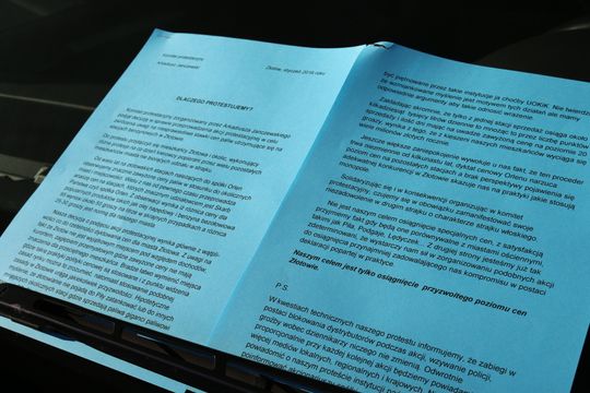 "Od wielu lat na złotowskich stacjach należących do spółki Orlen obserwujemy znacznie zawyżone ceny paliw w stosunku do okolicznych miast i miejscowości. Wielu z nas od pewnego czasu przeprowadza analizę cen na stacjach, których znacznym udziałowcem jest Skarb Państwa czyli spółka Orlen. Z obserwacji wynika iż różnica ceny dla popularnych produktów takich jak olej napędowy i benzyna bezołowiowa 95 wynosi około 50 groszy na litrze w skrajnych przypadkach, różnica 25-30 groszy jest normą dla naszego miasta" - Komitet protestacyjny Arkadiusz Janczewski.