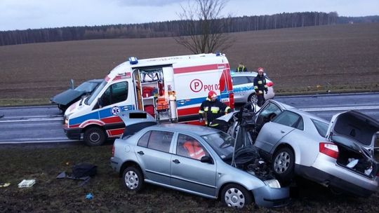 Po przybyciu na miejsce zdarzenia pierwszych jednostek straży pożarnej stwierdzono, że doszło do zderzenia trzech samochodów osobowych Audi A4, Skoda Fabia oraz Lancia Dedra. Działania straży pożarnej polegały na zabezpieczeniu miejsca zdarzenia, wykonaniu dostępu do dwóch zakleszczonych osób znajdujących się w jednym z pojazdów oraz udzieleniu kwalifikowanej pomocy dla trzech osób poszkodowanych biorących udział w wypadku. Dalsze działania straży pożarnej polegały na zabezpieczeniu miejsca zdarzenia, odłączeniu akumulatorów, zamknięciu instalacji gazowych w pojazdach oraz usunięciu płynów eksploatacyjnych z jezdni. W wypadku poszkodowane zostały cztery osoby, które trafiły do szpitali w Wyrzysku i w Pile. W działaniach trwających ponad 3 godziny udział brały zastępy straży pożarnej z Ochotniczej Straży Pożarnej w Kaczorach i Jednostki Ratowniczo Gaśniczej PSP Nr 1 i 2 w Pile, Oficer Komendy Powiatowej PSP w Pile, trzy zespoły Państwowego Ratownictwa Medycznego oraz Policja.