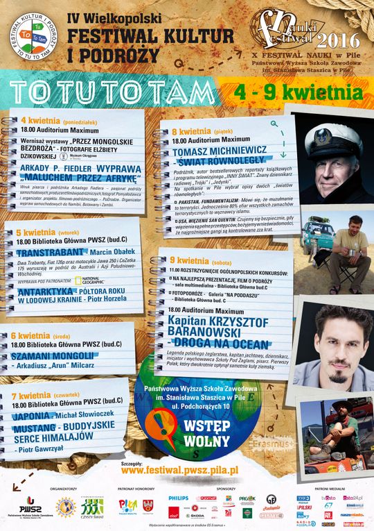 To wszystko podczas jubileuszowego X FESTIWALU NAUKI PWSZ w Pile, połączonego z IV WIELKOPOLSKIM FESTIWALEM KULTUR I PODRÓŻY „ToTuToTam”.