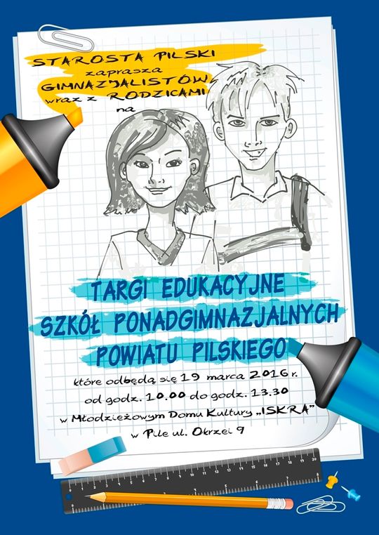 Targi Edukacyjne odbędą się w Młodzieżowym Domu Kultury „Iskra” w Pile, przy ul. Okrzei 9. Zapraszamy w godzinach od 10.00 do 13.30.