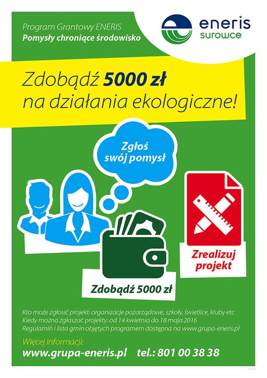 Program Grantowy ENERIS rusza już 14 kwietnia. Zgłoszenia projektów przyjmowane będą do 18 maja br. wyłącznie za pomocą formularza dostępnego na stronie www.grupa-eneris.pl/ProgramGrantowy