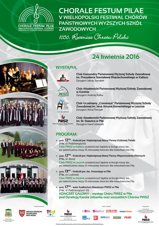 W imieniu społeczności akademickiej oraz Stowarzyszenia Miłośników Chóru Państwowej Wyższej Szkoły Zawodowej im. Stanisława Staszica w Pile, mamy zaszczyt zaprosić Państwa na Koncert Galowy wykonywany w ramach V WIELKOPOLSKIEGO FESTIWALU CHÓRÓW PAŃSTWOWYCH WYŻSZYCH SZKÓŁ ZAWODOWYCH.