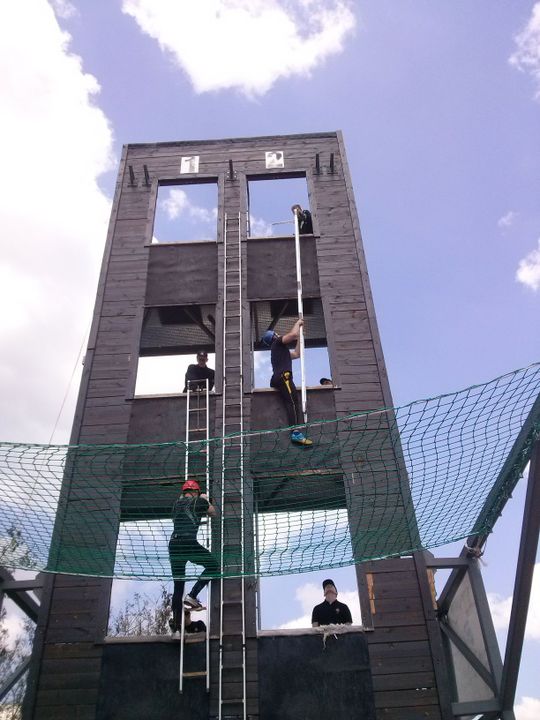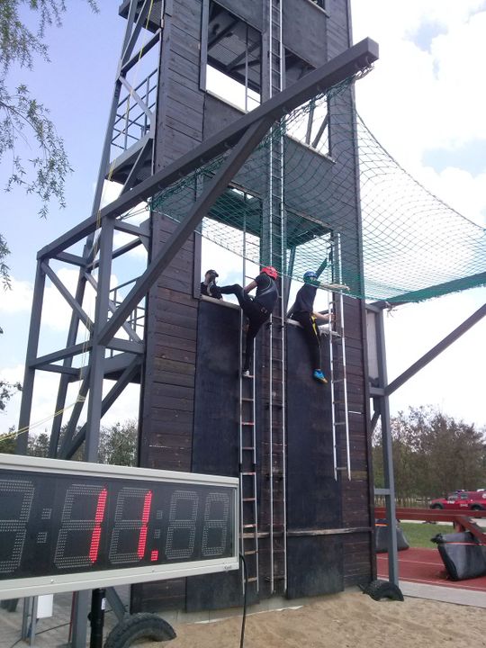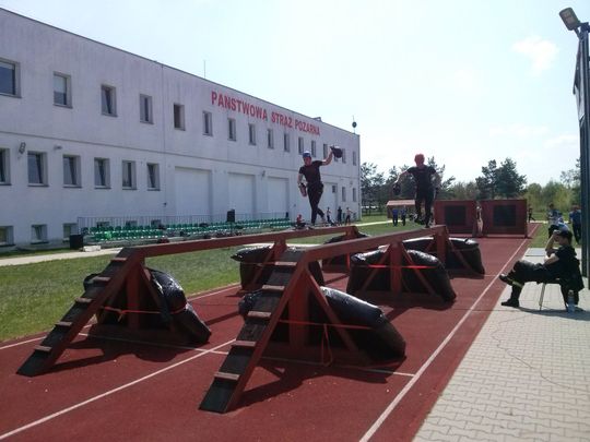 użyciu drabiny hakowej na 3 piętro wspinalni oraz pożarniczy tor przeszkód 100 m,
