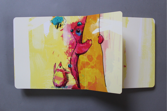 Kartonowa książka o Miśku, któremu kończy się miód, więc wyrusza na jego poszukiwanie. Historię trzeba sobie jednak opowiedzieć samemu, bo nie ma w niej ani jednego słowa, oprócz tajemniczego, tytułowego „Mmmmm”. Książka do zabawy, do przeglądania tam i z powrotem do wymyślania i opowiadania własnej historii, niezależnie od wieku.