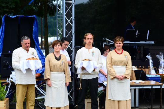 Chleb został podzielony wśród obecnych na uroczystości gości, a następnie gospodarze Dożynek zwrócili się do zgromadzonych.