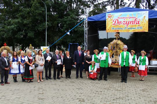 Oficjalna część Dożynek odbyła się na boisku w Brzostowie. Tutaj wszystkich zgromadzonych gości powitali - wójt Małgorzata Włodarczyk i starosta Eligiusz Komarowski. Na uroczystość licznie przybyli najważniejsi tego dnia - rolnicy, sadownicy, ogrodnicy, pszczelarze ale również pilscy działkowcy, dla których Dożynki stanowiły także okazję do wspólnego świętowania i integracji. Byli również członkowie zarządu - wicestarosta Stefan Piechocki oraz Przemysław Pochylski i Jerzy Wiesiołek. Nie zabrakło też przedstawicieli gminnych władz samorządowych – obecni byli wszyscy burmistrzowie i wójtowie gmin powiatu pilskiego. Zabrakło natomiast prezydenta Piły. Obecni byli radni Rady Powiatu w Pile, przewodniczący rad gmin i radni oraz radny Sejmiku Województwa Wielkopolskiego Jan Marek Pikulik, jako jedyny radny wojewódzki. Byli też parlamentarzyści ziemi pilskiej: Marcin Porzucek, Krzysztof Paszyk, Błażej Parda i Grzegorz Piechowiak. Nie zabrakło też dyrektorów i kierowników urzędów administracji publicznej, w tym jednostek powiatowych, a także służb i inspekcji.