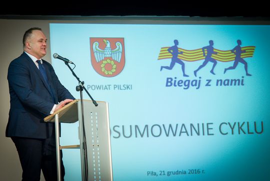 – Gratuluję państwu zaangażowania. Serdecznie dziękuję wszystkim organizatorom i władzom poszczególnych gmin za wsparcie naszego wspólnego przedsięwzięcia. Bardzo się cieszę, że możemy się spotkać właśnie tutaj. Mam nadzieję, że dzisiejsza uroczystość przypadnie państwu do gustu. Korzystając z okazji, życzę radosnych świąt Bożego Narodzenia i wielu sukcesów w nowym roku – powiedział na początku spotkania Eligiusz Komarowski, starosta pilski. Miłe słowa pod adresem laureatów skierował również Błażej Parda, poseł na sejm RP: - Podziwiam państwa kondycję. Ja też uprawiam sport, ale preferuję rower. Cieszę się, że tak liczne grono osób ukończyło tegoroczny cykl. Szczerze gratuluję.