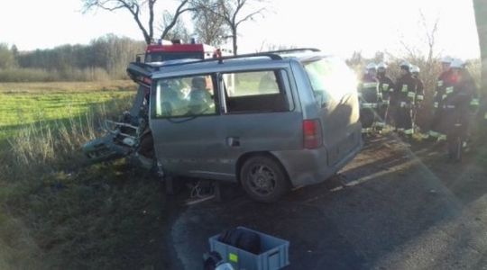 Po przybyciu na miejsce zdarzenia pierwszych zastępów straży pożarnej stwierdzono, że samochód dostawczy Mercedes Vito uderzył w przydrożne drzewo. W pojeździe znajdowały się dwie osoby poszkodowane. Działania strażaków polegały na zabezpieczeniu miejsca zdarzenia i w pierwszej fazie działań udzieleniu kwalifikowanej pierwszej pomocy uczestnikom wypadku. Ponadto przy użyciu sprzętu hydraulicznego wykonano dostęp do jednej z nich. W wyniku zdarzenia jedna osoba poniosła śmierć, druga z obrażeniami ciała przetransportowana została przez Zespół Ratownictwa Medycznego do szpitala.