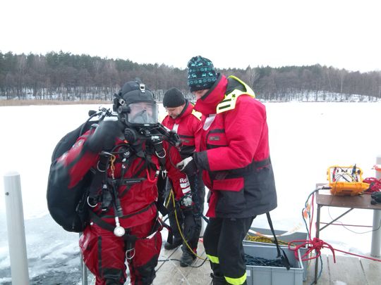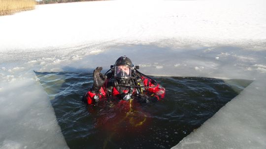 - Pierwszy moduł szkoleniowy - nurkowy zrealizowany pod 15 centymetrową taflą lodu przez wyznaczonych strażaków Specjalistycznej Grupy Ratownictwa Wodno – Nurkowego KP PSP w Pile.
