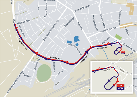 3. Start i meta: ul. Okrzei 4 - stadion