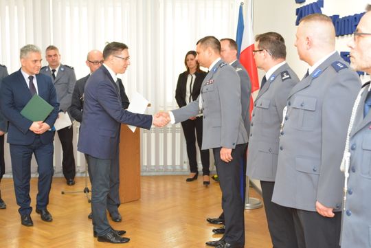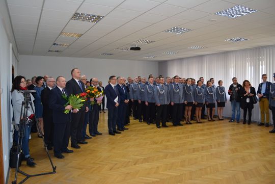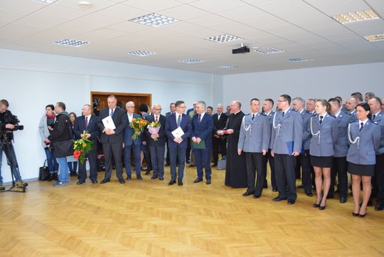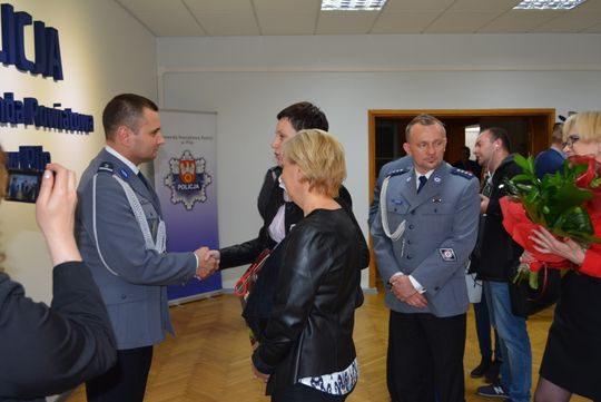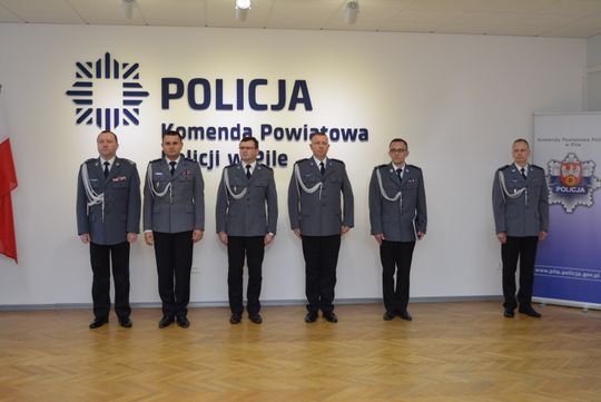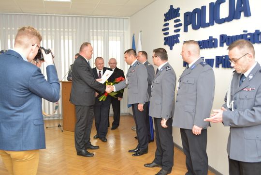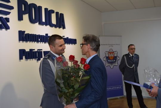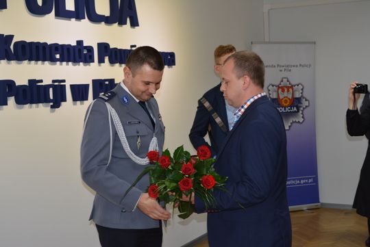 Prezydent oraz Starosta w imieniu swoim, pracowników oraz mieszkańców Piły i powiatu pilskiego podziękowali Komendantowi Powiatowemu mł. insp. Piotrowi Skrzypkowiakowi za miłą i owocną współpracę, zaangażowanie i dbanie o bezpieczeństwo obywateli. Głos zabrał również ksiądz kapela Antoni Tofil, który wyraził swój smutek z powodu odejścia dotychczasowego Komendanta Powiatowego dziękując mu za życzliwość, pomoc i fachowość.