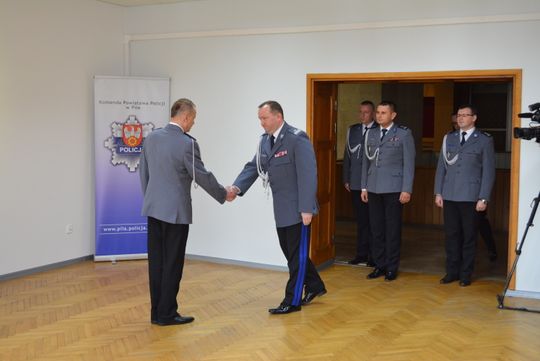 I Z-ca Komendanta Powiatowego Policji w Pile, a obecnie już p.o. Komendant Powiatowy Policji w Pile mł. insp. Sławomir Sobański, w swoim wystąpieniu podziękował odchodzącemu ze stanowiska mł. insp. Piotrowi Skrzypkowiakowi za wspólną, owocną służbę oraz za profesjonalizm i przyjazną atmosferę pracy.