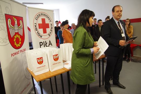 Nagrody, ufundowane przez Starostwo oraz PWSZ w Pile, wręczyli: Prezes Oddziału Rejonowego PCK w Pile - Mirosław Welc, Prorektor PWSZ w Pile – prof. nzw. dr Ryszard Bania oraz Przemysław Pochylski – reprezentujący Starostę Pilskiego.
