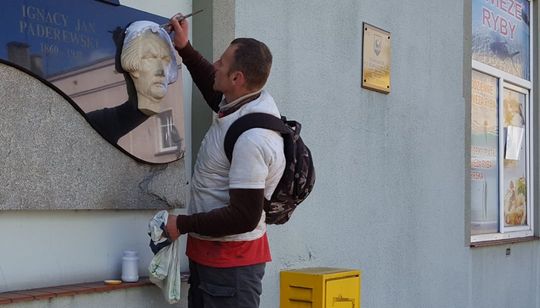 Od godziny 9 30 na Placu Paderewskiego w Złotowie, trwają prace renowacyjne przy tablicy pamiątkowej Ignacego Paderewskiego.