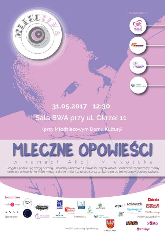 -W ramach tego tygodnia będziemy mogli wziąć udział w szczególnej akcji o nazwie Mlekoteka. Lokalną organizatorką akcji jest dyplomowana promotorka karmienia piersią - Agnieszka Fechner, mama trójki dzieci i właścicielka firmy Mamilla. Mlekotekę objął honorowym patronatem Starosta Powiatu Pilskiego Eligiusz Komarowski.