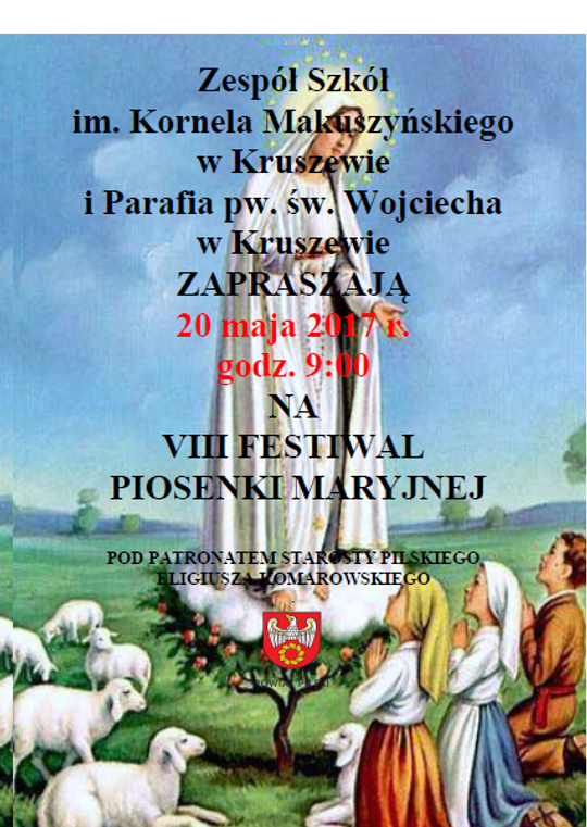 Rozwojowi duchowemu mogą posłużyć dwa festiwale pieśni religijnych. Pierwszy z nich odbędzie się w sobotę w Kruszewie (gmina Ujście). Już o 9:00, wewnątrz urokliwego kościoła pw. św. Wojciecha, rozpocznie się VIII Festiwal Piosenki Maryjnej – Śpiewajmy Jezusowi i Maryi. Koncert adresowany jest do dzieci i młodzieży, ale wokalne umiejętności młodych uczestników podziwiać może każdy. Bogatsza historia, szerszy zasięg i bardziej zróżnicowane wiekowo grono wykonawców charakteryzują Koncert Pieśni Maryjnych i Religijnych, którego dwudziesta edycja została zaplanowana na niedzielę, 21 maja. Koncert ma charakter konkursu, a areną zmagań będzie Gminny Ośrodek Kultury w Białośliwiu.