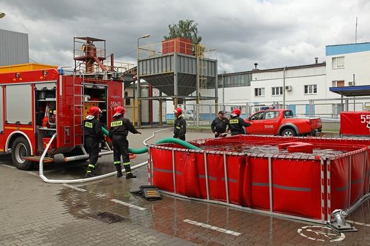 Założeniem do ćwiczeń był symulowany pożar w jednym z obiektów na terenie zakładu oraz zbudowanie sprawnego systemu dostarczania wody na odległość około 500 metrów, w tym utrzymanie wydajności sytemu na poziomie 2000 l/min. Do realizacji zadań wykorzystany został bufor wodny w postaci zbiornika brezentowego o pojemności 13 tysięcy litrów, autopompy, motopompy, zbiorniki brezentowe o pojemności 1000 litrów oraz armatura wodna będącą na wyposażeniu pojazdów gaśniczych.
