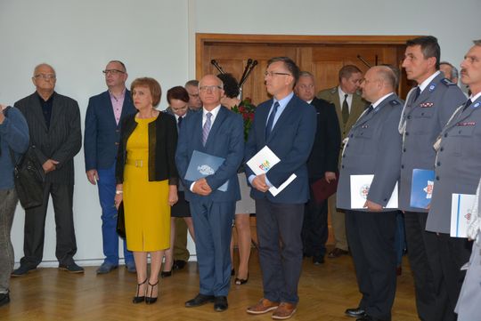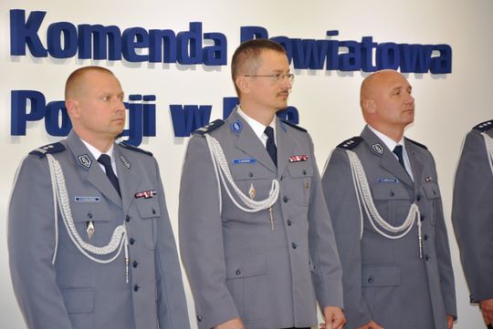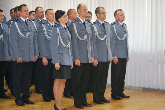 Mł. insp. Rafał Pawłowski - Zastępca Komendanta Wojewódzkiego Policji w Poznaniu pogratulował Panom Komendantom, życząc wielu sukcesów. Podkreślił Ich zasługi i zaangażowanie w realizację codziennych zadań służbowych na pełnionych do tej pory stanowiskach kierowniczych.