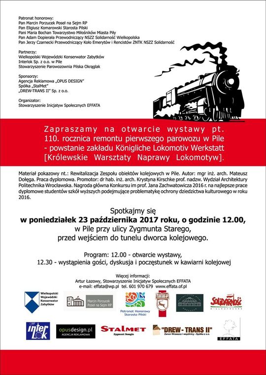 Program: 12.00 - otwarcie wystawy, 12.30 - wystąpienia gości, dyskusja i poczęstunek w kawiarni kolejowej.