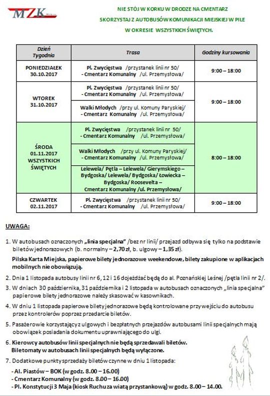 Poniżej rozkład jazdy autobusów linii specjalnych.