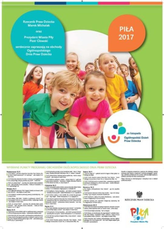• 10:00 Happening na terenie pilskich szkół i w najbliższej okolicy: prezentacje w formie artystycznej praw dziecka – każda szkoła w dowolnej formie,