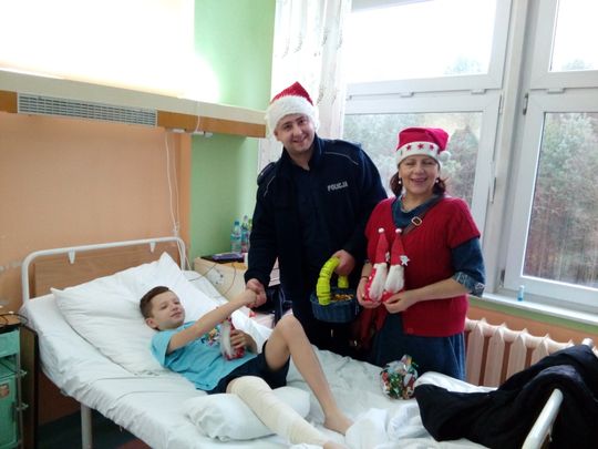 Podczas tej niecodziennej wizyty mali pacjenci w związku z Mikołajkami, otrzymali od mundurowych oraz seniorówelementy odblaskowe, laurki z wizerunkiem Świętego Mikołaja przygotowane przez dzieci policjantów z pilskiej komendy, słodkości, a także specjalnie przygotowane przez seniorki piękne milusińskie mikołaje. Policjanci podczas wizyty rozmawiali z dziećmi na temat bezpieczeństwa, ale przede wszystkim dyskusja skupiła się wokół Mikołajek. Jak się okazało wszystkie dzieci napisały już list do Mikołaja i oczekują na wymarzone prezenty.