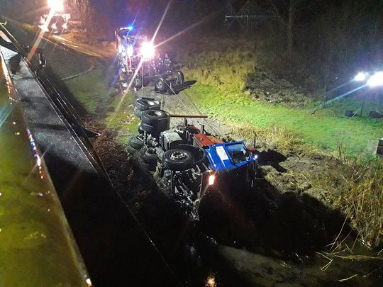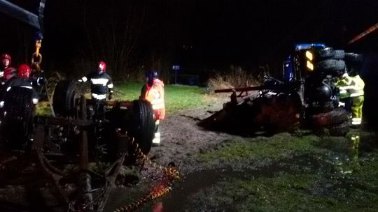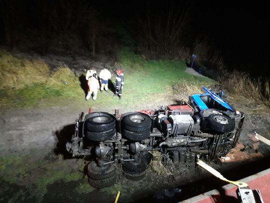 Przed przybyciem pierwszej jednostki straży działanie ratownicze podjęli policjanci, którzy próbowali z dachu pojazdu ewakuować kierowcę ciężarówki. Niestety próby te zakończyły się niepowodzeniem. Działania zastępów straży pożarnej w pierwszej fazie prowadzone były przez nurków, którzy rozpoczęli próbę dotarcia do zakleszczonego wewnątrz kabiny nieprzytomnego kierowcy. Ze względu na deformację karoserii pojazdu ewakuacja mężczyzny możliwa była dopiero po użyciu narzędzi hydraulicznych. Poszkodowany po wydobyciu został przetransportowany na brzeg i przekazany zespołowi karetki pogotowia ratunkowego. Lekarz po przeprowadzonym badaniu stwierdził zgon mężczyzny.