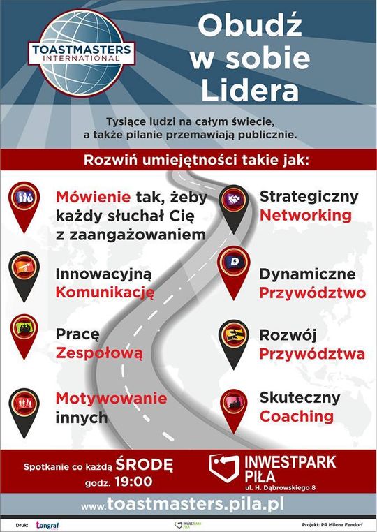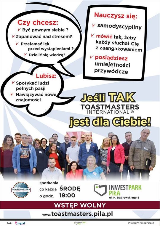 Uczestnictwo w klubie pozwoli Ci uczyć się i szlifować kompetencje związane z wystąpieniami publicznymi i umiejętnościami prawdziwych liderów. Krok po kroku, uczestnicząc w zajęciach Toastmasters staniesz się z zestresowanego człowieka na środku sceny profesjonalnym mówcą, który porywa tłumy. A wszystko to w środowisku akceptacji i zrozumienia. Ponadto poznasz mnóstwo nowych ludzi, którzy będą dzielić się z Tobą swoją wiedzą, pasją, wzajemnie się inspirować oraz pomagać stawać się człowiekiem aktywnym.