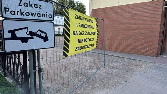 Redakcja otrzymała wieczorem zdjęcie tego dzieła. Dostajemy wiele informacji o poważnych problemach, których z oczywistych względów bez sprawdzenia nie publikujemy, ale zdarzają się również takie michałki, które bardzo łatwo możemy zweryfikować. Oczywiście, nie byłoby w tym nic zaskakującego, gdyby nie treść baneru, która wprawiła w autentyczne osłupienie. Na miejsce udaliśmy się natychmiast, podejrzewając najpierw żart. Zastaliśmy zawieszony żóty banner oraz płot, który skutecznie zablokował wjazd każdemu, kto akurat zamierzał faktycznie korzystać ze swojego własnego podwórka. Dla pewności, łamiąc zakaz, wjechaliśmy na teren wewnętrzny kamienic. Nie zastaliśmy ani śladu budowy. Podwórko jak podwórko, jedynym znakiem aktywności był rzeczony płot przy szkolnym boisku. Owszem, gdzieś pojawiało się coś na kształt ogrodzenia, ale zgodnie z prawem budowlanym, samo ogrodzenie nie czyni z miejsca placu budowy. Brak tablicy informacyjnej, brak numeru pozwolenia, brak nawet drobnej adnotacji dzięki której można ustalić kontakt do inwestora.