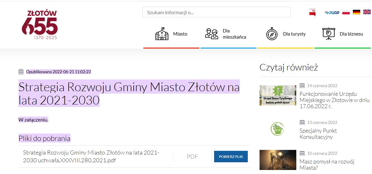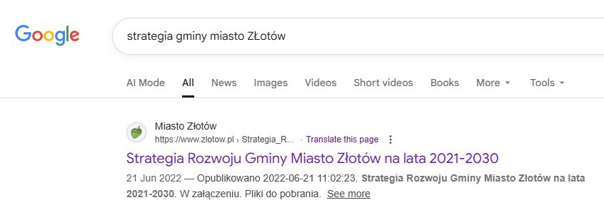 Od roku miasto żyje kolejnym „nowym otwarciem”, kolejnym znaczkiem i kolejną opowieścią której nie znamy bo nie została zdefiniowana podczas gdy obowiązująca do 2030 roku strategia „Złotów. Wielkopolskie Zdroje” pozostaje ta sama! Uchwalona jeszcze w 2021 roku i wciąż formalnie nieruszona, choć na poziomie wizerunkowym trwa gorączkowe „odcinanie się” od jej autorów. Google zresztą nie ma z tym problemu: po wpisaniu hasła wciąż wyświetla pierwotny, prawidłowy znak, zgodnie z dokumentem strategicznym i jego faktycznym rodowodem.
