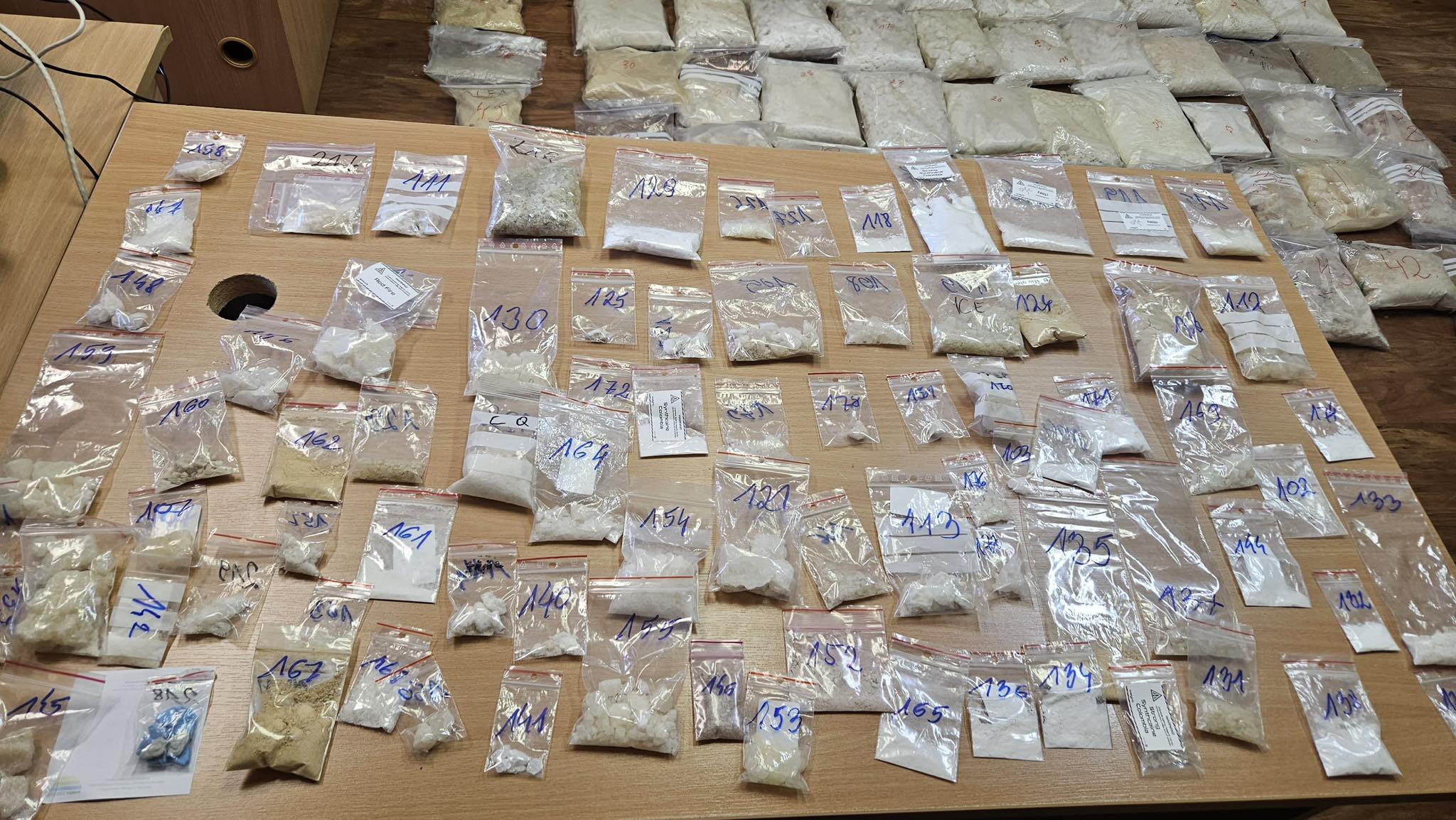 Wśród przejętych środków znalazły się 31,902 g mefedronu, 25,942 g amfetaminy, 3,992 g MDMA, 3,492 tabletki ecstasy, 390 gum i lizaków z amfetaminą/MDMA oraz ponad 11 tys. tabletek psychotropowych i na potencję.