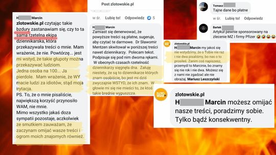 Awanturę, co szczególnie zaskakujące, wywołał Marcin H. - znany złotowski przedsiębiorca. To właśnie jego wpisy uruchomiły lawinę kolejnych, które doprowadziły do zaskakującego coming out -u. Zadziwiające w tym jest zwłaszcza to, że przedsiębiorca Marcin H. to nie prawicowy faszysta z wrogiego, nienawistnego portalu, który podobno nie istnieje, którego nawet nazwy niektórzy boją się wypowiedzieć w towarzystwie, bo karcone jest to ostracyzmem. Marcin H. to raczej ktoś przychylny niektórym złotowskim mediom. Sympatia ta w przeszłości była zresztą odwzajemniana. Wystarczy przywołać historię konfliktu „demona” z parafii Piotra i Pawła z Marcinem H., który w typowy dla siebie sposób relacjonowały media M. Leszczyńskiego.