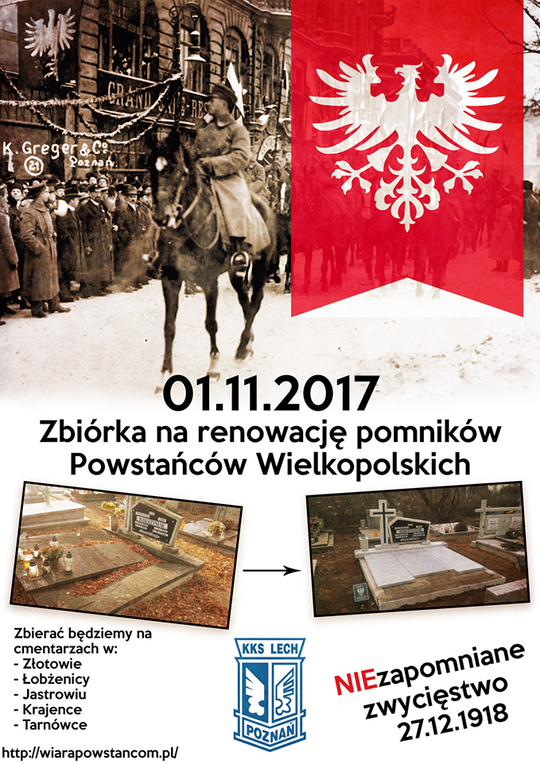 Organizatorzy zbiórki podkreślają, że liczy się każdy grosz, więc śmiało można przyszykować nawet najdrobniejsze kwoty. W ich apelu czytamy: "Zdajemy sobie sprawę, że każdy w tym dniu ma już dość spory wydatek dbając o grób swoich najbliższych. Nie możemy jednak zapominać przy okazji takich świąt o naszych Bohaterach, którzy oddali swoje życie byśmy mogli żyć w Polsce i być dumnymi Wielkopolanami. Sukces tej akcji jest zależny od Was, więc kolejny raz liczymy na wielkie serca naszych mieszkańców".