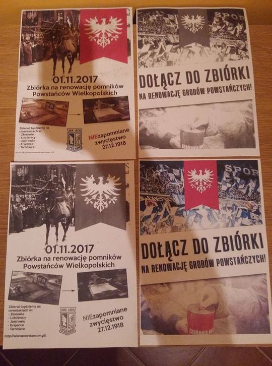 W całej Wielkopolsce 1 listopada zbierane będą pieniądze na renowacje miejsc spoczynku Powstańców Wielkopolskich. Cieszy, że w inicjatywę, za sprawą Złotowskich Patriotów oraz Kibiców Lecha Poznań, kolejny raz włączyło się także kilka miejscowości z terenu powiatu złotowskiego. 1 listopada wolontariusze (odpowiednio oznaczeni) będą zbierali do puszek przy bramach cmentarnych w następujących miejscowościach: