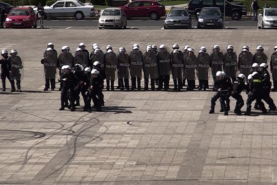 Drugiego dnia policjanci uczestniczyli w ćwiczeniach podnoszących ich umiejętności strzeleckie oraz taktyki i techniki interwencji. Najbardziej widowiskowe były z pewnością ogólnodostępne ćwiczenia pododdziałów zwartych, które odbywały się na placu Staszica.