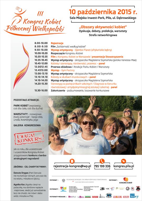 Jak co roku dla uczestniczek i uczestników Kongresu Kobiet Północnej Wielkopolski przygotowano konkurs z bardzo atrakcyjnymi nagrodami (tablet, karnety, vouchery, zestawy upominkowe), połączony ze zbiórką charytatywną na rzecz kongreswomenek: