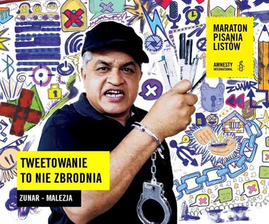 Polityczny karykaturzysta Zunarjest zagrożony wyrokiem długoletniego więzienia za zamieszczenie tweetów potępiających uwięzienie lidera opozycji w Malezji. Rząd dokłada ogromnych starań, aby uciszyć sprzeciwy i dyskusje oraz uwięzić swoich krytyków.